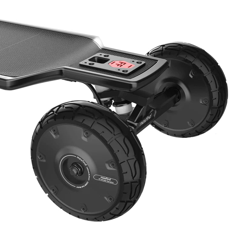 The M III Dual Kingpin Truck design provides the Maxfind FF AT electric skateboard with higher ground clearance, offering a smoother riding experience.