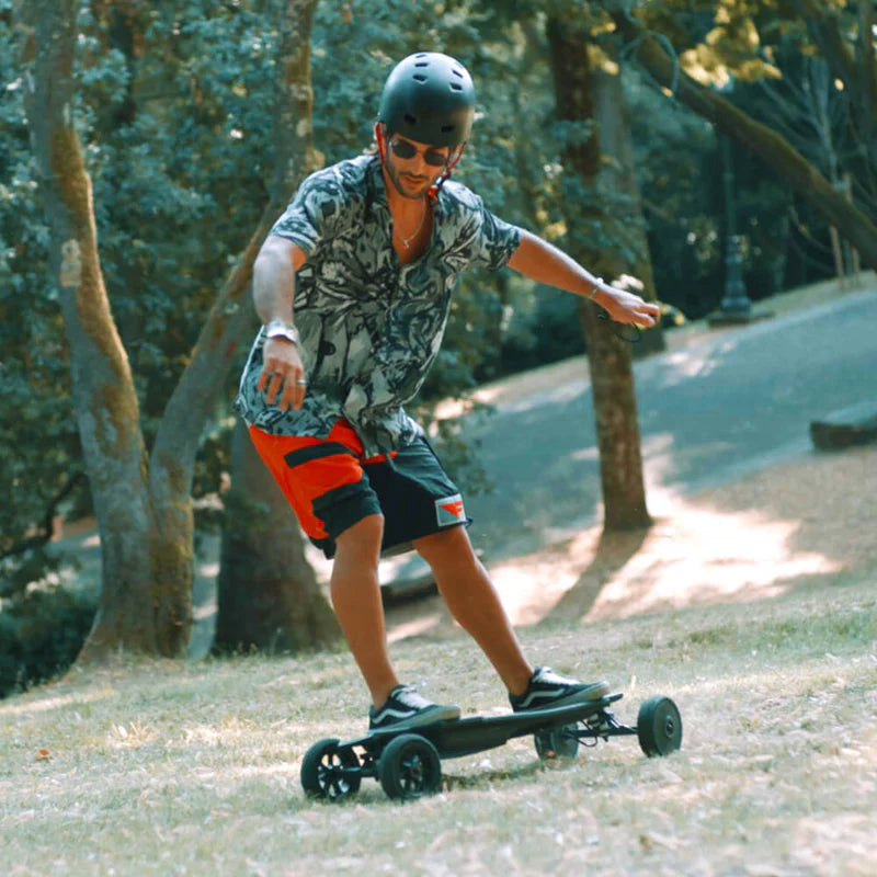 The 165mm vacuum rubber tires provide greater traction and stability. It provides better grip, allowing the all terrain electric skateboard to ride on unswept snow, loose sand or any soft surface and easily overcome asphalt, rocks and stones on the trails.