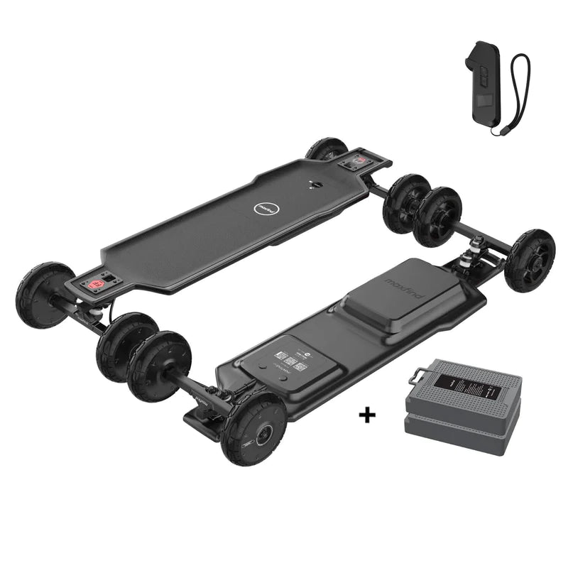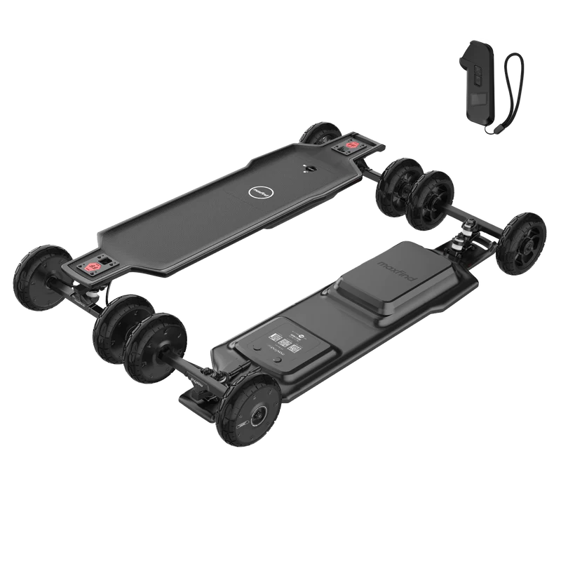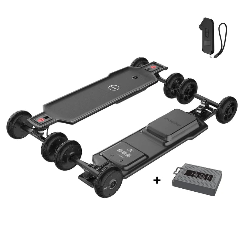 The Maxfind FF AT is a high-performance, all-terrain, fastest, long-range electric skateboard. The powerful 1500W*2 dual motor drive system provides powerful torque; the fast-swap battery design meets your long-distance riding needs; the unique flexible deck and 165mm Vacuum Rubber-Tires give super comfortable riding. This is a real beast! Enjoy in your perfect ride, and unleash your imagination!