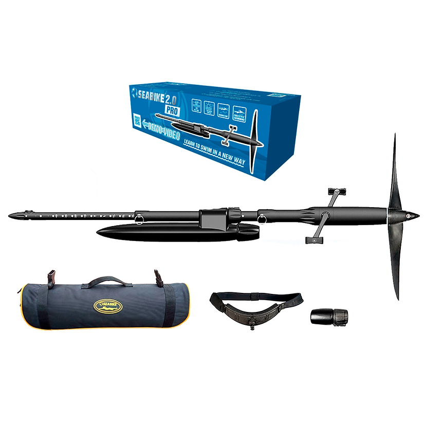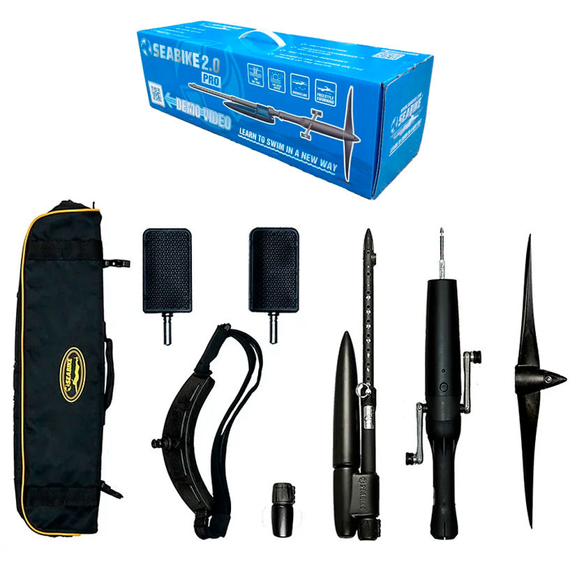 Experienced engineers have made sure SEABIKE Pro is easy to use and transport. It will be a great supplement to your seaside vacation or yacht trip. SEABIKE Pro is a portable water bike that allows you to quickly cover large distances in fresh and salt water. It attaches to your belt and speeds up your movement as you pedal.