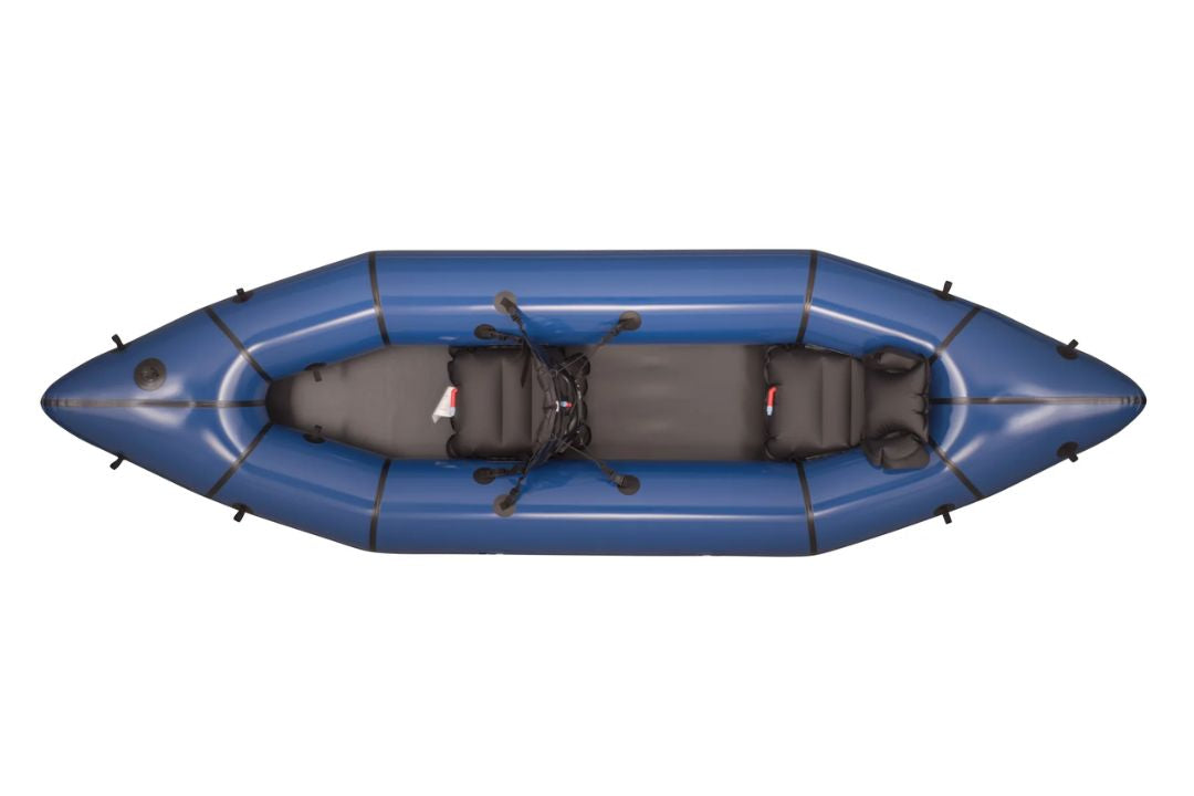 It is suggested to use single-bladed paddles if 2 people in the packraft.