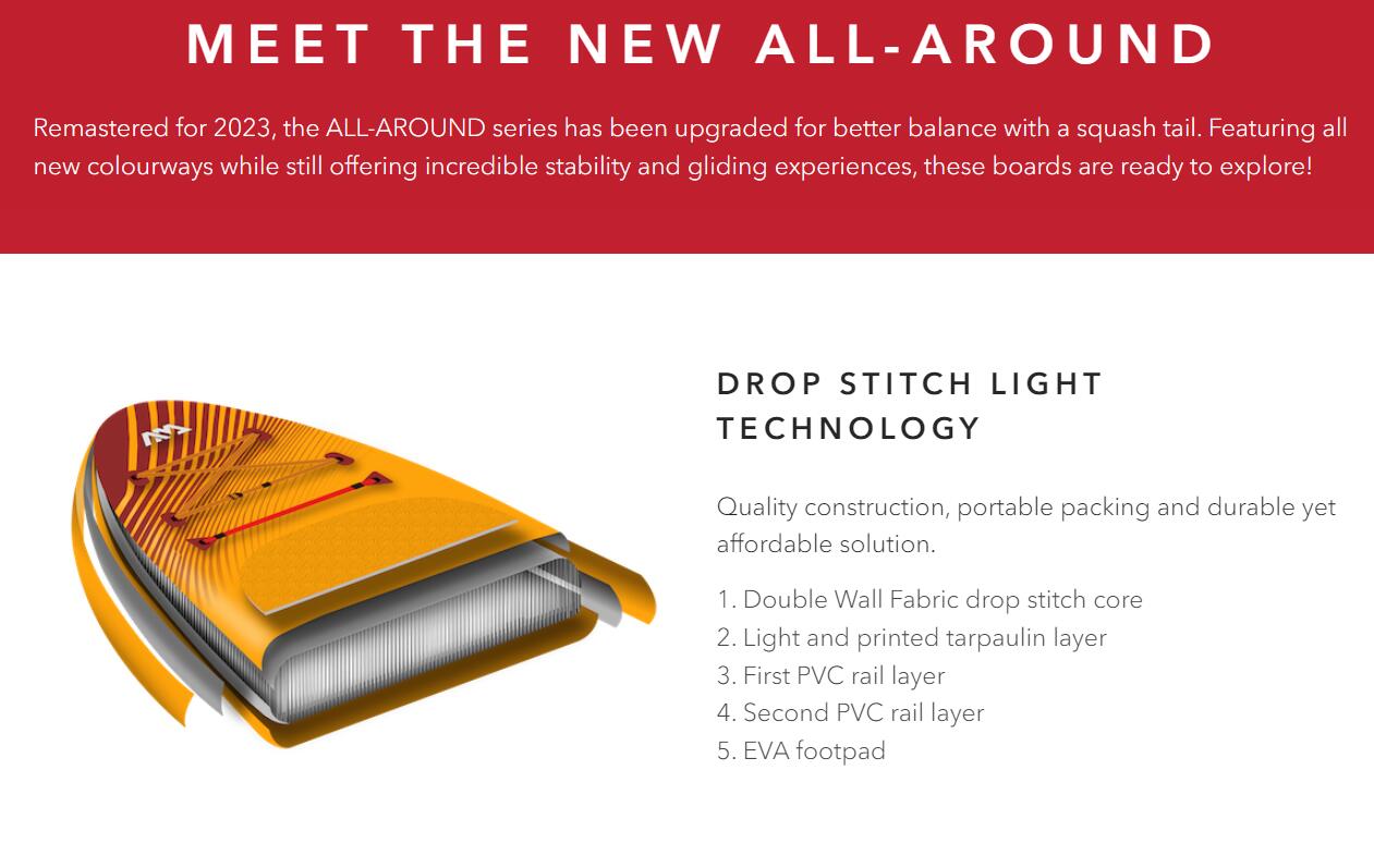Ideal for both beginners and seasoned riders, our ALL-AROUND series is meticulously crafted for versatility. In 2023, we've taken it up a notch by re-engineering our models with a refined shape, ultra-stable construction, and a host of additional features. Whether you're navigating flat water or small waves, our boards come ready out of the box – compact, lightweight, and ultra-portable.